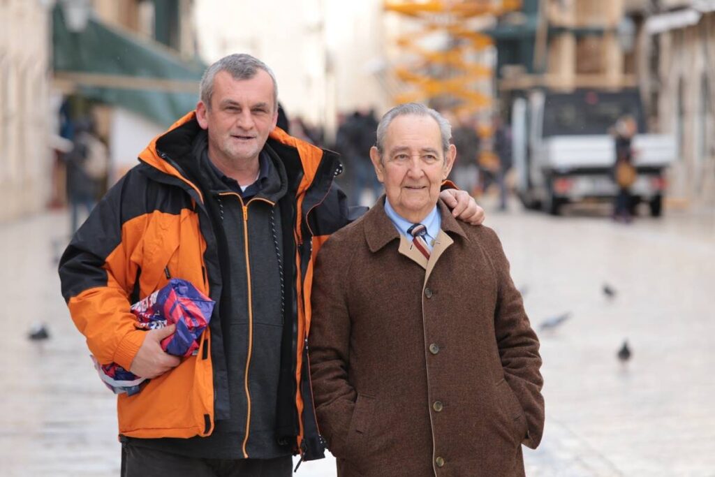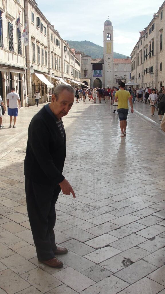 Grad nisu samo Zidine, dvori i tvrđe mu, Grad je čeljad njegova, čeljad koja mu čini dušu, daje sebe i od njega čini Grad. I kad svi odu, pa čak i čiope odlete na jug, kad utihne ljetna vreva i dođe jesen i rosata, bura koja kosti štipa i zimska tjeskoba, ima ih koji ostaju usred te tišine Grada, ostaju oni koji ga čine, oni koji su mu duša, dah, oni koji ga žive i tada, to malo čeljadi mu, preostali golubovi i poneki kučak i mačak. I tada, u zimske dane kad ostanemo sami, đir Stradunom ugodan je i lijep, od Velike fontane, pored zimi samotnog malog maskerona, ljetnoj atrakciji po kojem mladići skaču kao dokaz svoje ljubavi, pa uz veliki zid Male braće i prelijepe skulpture Piete iz 1499., iznad ulaznih vrata ove crkve, čudom sačuvanoj u Velikoj trešnji, te pored „Manona“ nekad znanog nam i kao „Caffe d’ imbecilli“, u kojem su kavu pili mnogi znani, pa i Conte Ivo, te uz Široku gdje se u svoj dom skrio naš Marin, dalje možda na ukusni sendvič do „Škole“ ili kavu do „Tinela“ nekad „Talira“, pa niz Stradun uz sve te izloge i ulice koje do njega se slijevaju, s pogledom iz navike do vrha Boškovićeve za vidjet ‘ko se spušta tim skalinima od Buže u Grad, sve do Luže, Svetog Vlaha, oko Orlanda, do Male fontane i Sponze podno Zvonika, gdje i danas iz navike pogledamo koji film večeras igra. I još dalje u taj đir, preko Peskarije do Porporele i ferala, za vidjet’ iza Lokruma kako će nam vrijeme sutra bit’. I tad, u ove zimske dane i noći, đir Stradunom pun je života, kao za Noći muzeja kad je taj đir bio pun čeljadi, kao potvrda kako mu onaj kičeraj od kućica nije potreban i sramota je za njegovu ljepotu. Đirava se i u ove dane kad se za malo škuda, nikad javno rečen iznos, prodao Stradun i od njega učinila još jedna nezgrapna, sramna i našem Gradu nepotrebna filmska kulisa, koja će ga iznova ponizit i učinit neprepoznatljivim njegovu ljepotu. U ove dane, pred Festu našeg Parca, koja je kao i Grad nam zaštićena svjetska baština, Stradun je gradilište, po kamenu kojeg će se uskoro po najavama i potrebi filma i zemlja razasuti, te kroz kojeg će procesija teško normalno proći. A na kraju ovog đira ulicama našeg Grada, koji je iz ulice u ulicu potrajao devet godina, sa Straduna kakav danas izgleda zaslugom nekih koji ga ne vole, ne razumiju i prodaju ga bez duše i obzira, sklanjamo se od tog ludila u naše betule, Fontanu il’ Primo, gdje se okuplja čeljad koja voli ovaj naš Grad, u kojima se životu nazdravlja i raduje, ali i tuguje zbog prodaje Grada „za sva srebra i sva zlata“, jer vremena se mijenjaju, a „trijeba znat s bremenom akomodavat“, jer sad je ono „ko bi doli, sad je gori“. A ‘mjesto nas, „Sveti Vaho skalat’ će se s trona, pa s oltara na Stradun u đir“ krenut’ za vidjet svoj Grad i još jednom pokušati spasiti i sačuvati što se još može, te stoga, ponovimo mu iznova zahvalu za sva ova godišta od kad nas čuva i spašava od pogube rata, zla i budala: Živio nam Sveti Vlaho!